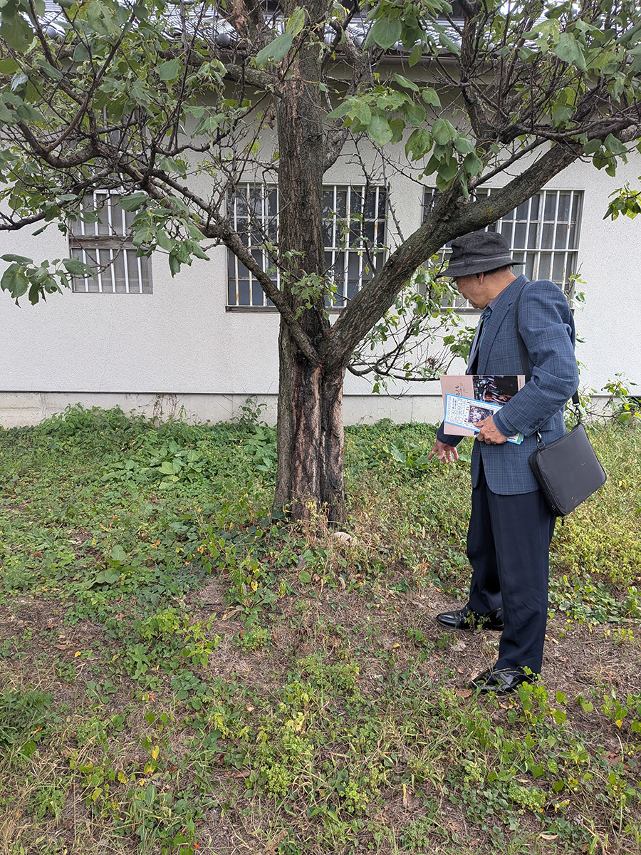 松本市歴史の里で。伊藤千代子の映画で仲間たちの手紙を隠した木です。